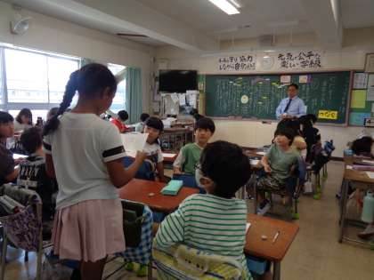 4年生の道徳の授業を参観しました。「やったぞ!漢字テスト」の教材文を使って、努力することや強い意志をもって取り組むことの大切さについて学びました。漢字テストでいい点を取るために、勉強する「ぼく」に、「もうひとりのぼく」が「今日は疲れてるから…」とささやきます。そんな自分に打ち勝って、努力を重ねる「ぼく」に共感し、自分の生活を振り返りました。「努力は裏切らない」「がんばった甲斐があった」といった発言があり、友達に拍手を送る場面もありました。