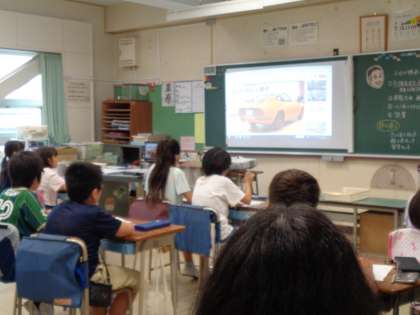 自動車を1台組み立てるのに約17時間かかることや、自動車が約3万もの部品からできていること、塗装の厚さが約0.1mmなど、具体的な数字を見ることでイメージしやすくなったようです。また、映像でほとんどの行程がAIロボットが組み立てていることも知ることができました。でも、エンジンを作ったり品質の検査をしたりするのは人間が行っていることも知り、安心で安全な自動車を役割分担しながら作っていることをこの工場見学を通して理解することができました。