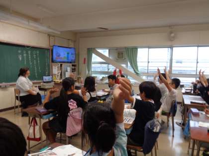 質疑応答の時間もあり、子供たちからいろいろな質問が出ました。また、未来の車として「eーpower」車は一つのペダルでアクセルとブレーキの役割をもっていることや、自動運転機能の付いた車の紹介などがあり、子供たちは興味津々で聞いていました。今の時代だからこそできるオンラインを活用した学習を取り入れながら、社会科の学習の学習のまとめをしていきます。