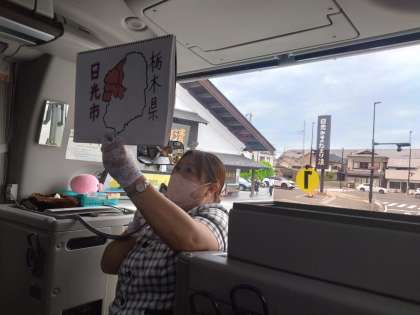 日光市内に入りました。バスの中から市内の様子を眺めながら、バスガイドさんのお話を聞いています。