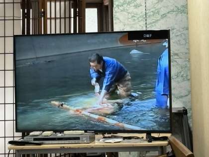 今ではなかなか見られない、水元という染め上げた布を川で洗う工程も見せていただきました。子供達も真剣にメモを取ります。