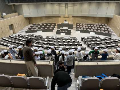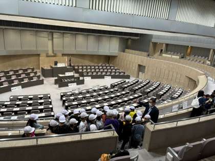 最初は都議会場で記念撮影です。テレビで見たことのある場所に、興味津々です。