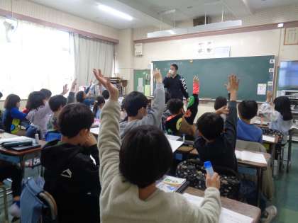 3年生の算数の授業を参観しました。「□を使った式」の4時間目では、これまで学習したことを基に、問題を読んで□を使って式を立てる学習に取り組みました。わからないところを□を使って式を立てることや、図を使って関係をとらえ、何算になるかを考えるなど、これまで学んだことを活かしながら学習を進めていました。自分で立てた式を友達に説明し合い、考えを確かめる姿もありました。最後はタブレットを使って自分たちで問題作りにも挑戦しました。