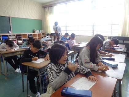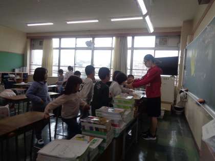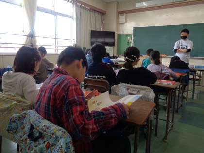 3年生の教室をのぞいてみると、新しい教科書をもらい教科書を見ながら、どんな勉強をするのか確かめたりしていました。自己紹介カードに記入している学級もありました。とても落ち着いた授業態度で感心しました。