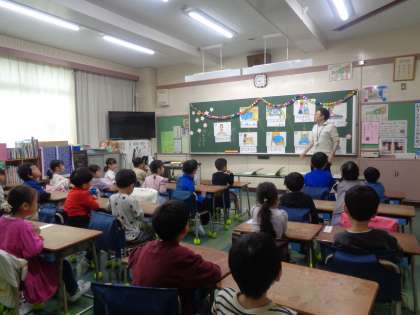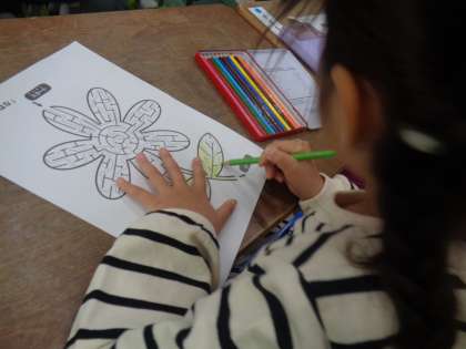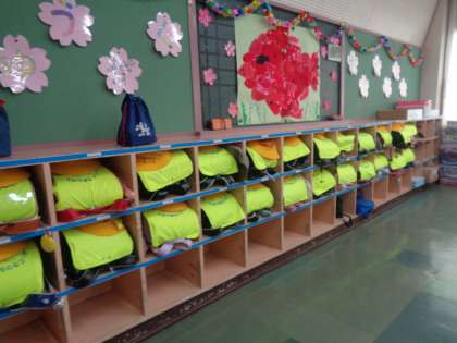 今日も小学校生活に慣れるためのいろいろなお勉強をしました。元気に挨拶した後は、荷物を置く場所や方付け方の確認をしました。ランドセルもしっかりしまうことができて先生にたくさん褒められました。鉛筆の持ち方を勉強した後、自分の名前を書いたり塗り絵に挑戦したりと、しっかりと学習にも取り組んでいました。