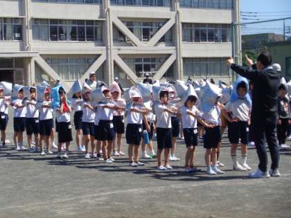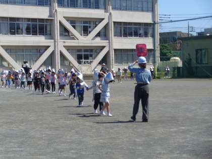 今年度初めての避難訓練がありました。第1回目は地震を想定した避難訓練です。2時間目の終了間際に地震発生を伝える放送の後、第一避難場所である校庭に避難する訓練をしました。1年生にとっては初めての小学校での避難訓練です。先生の後について落ち着いて避難することができていました。