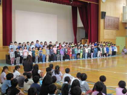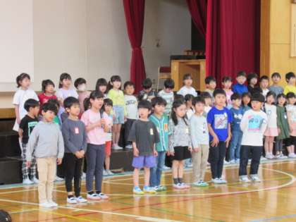 1年生からは、お礼の気持ちを込めて、「1年生になったら」の歌を発表しました。かわいらしく元気な歌声に、大きな拍手が沸き上がりました。