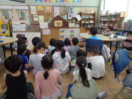 3年生の国語の図書の時間を参観しました。図書室の使い方や本の選び方の学習をした後、「かさこじぞう」の紙芝居を見ました。それから、それぞれが読みたい本や借りたい本を選びました。2年生までに図書室の使い方も、図書室での過ごし方もしっかりと学んできたので、落ち着いて過ごしていました。好きな本を選び、集中して読んだり、借りる手続きをしたりと、図書室で本の世界に浸りながら楽しい時間を過ごしました。