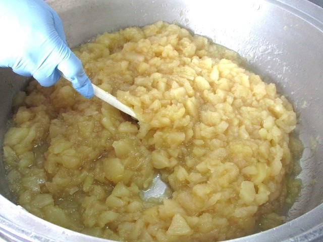 砂糖と水を加え弱火で煮込み、仕上げにレモン汁を