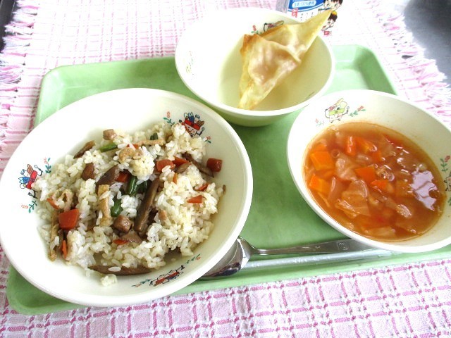 しゅうまいの皮にひとつずつ包み、オーブンで焼きました。