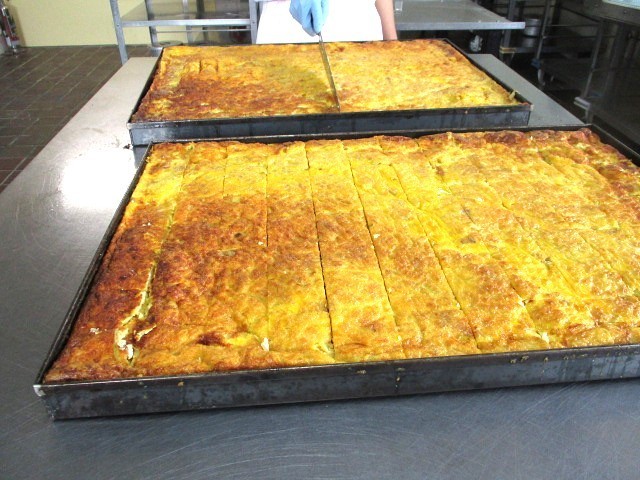 ベーコンなどを炒め、卵と混ぜてフライパンで