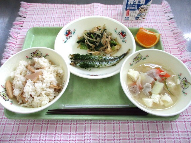 旬の「たけのこ」を使ってたけのこごはんを炊きました。