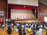 3月25日(水)に、修了式を体育館で行いました。まず校長先生が代表児童に向けて修...