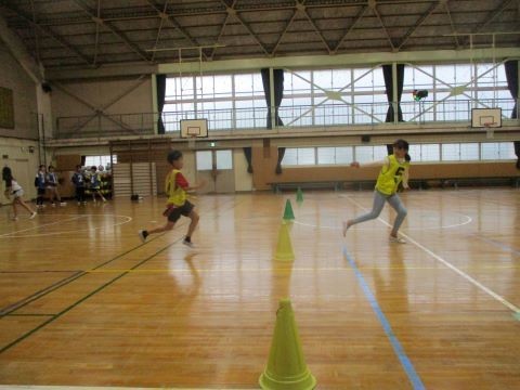 今日から高学年リレーの練習がはじまりました。雨天のため、体育館で練習をしました。走順を考え、バトンパスの練習をしました。
