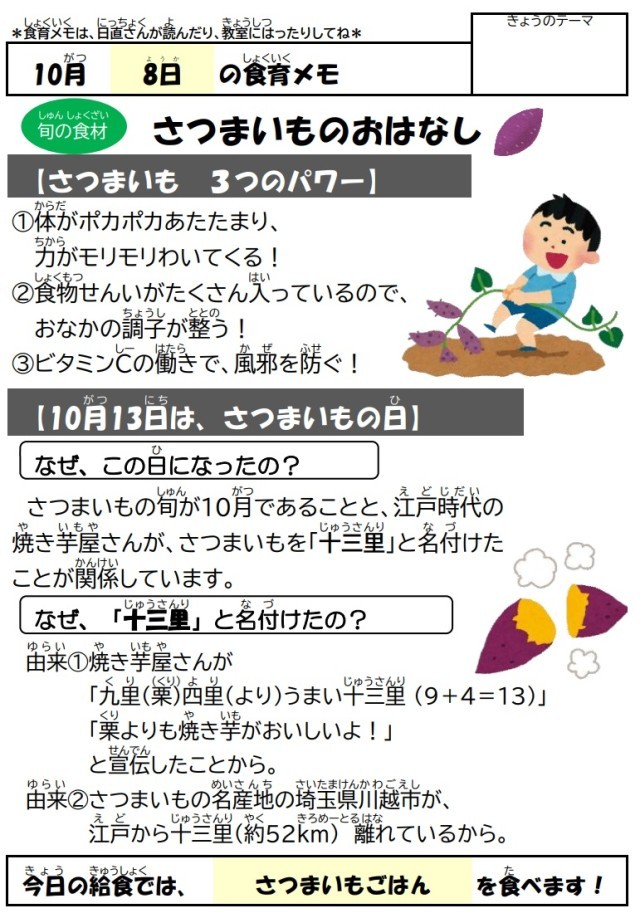 ※今日は今が旬のさつまいもを使って「さつまいもごはん」を