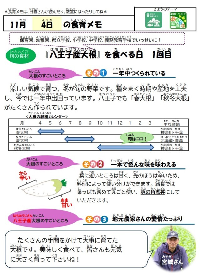 ※今日は、八王子産の大根を葉っぱも含め丸ごとすべて使って、
