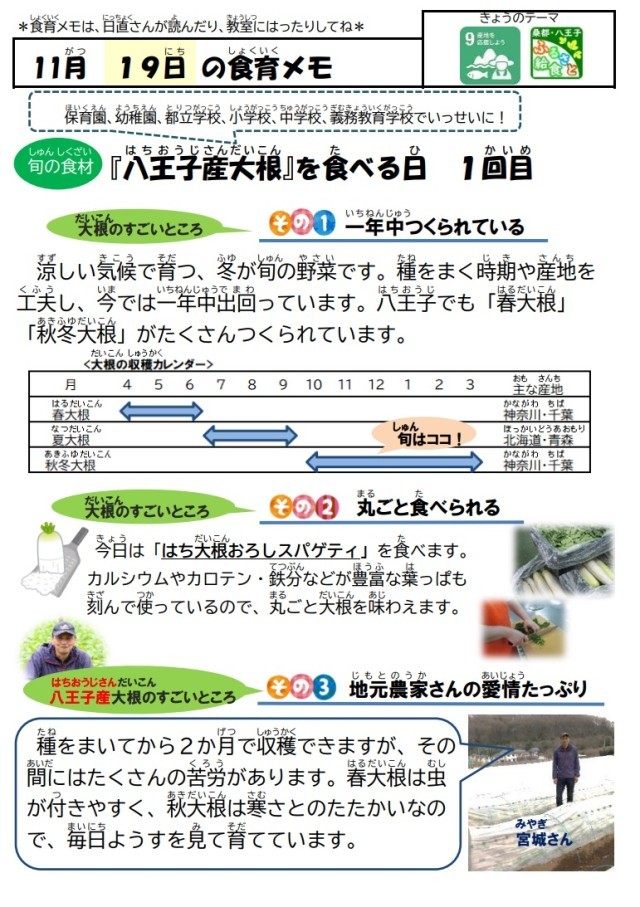 ※今日は、八王子産大根をたっぷり使って「はち大根おろしスパゲティ」を