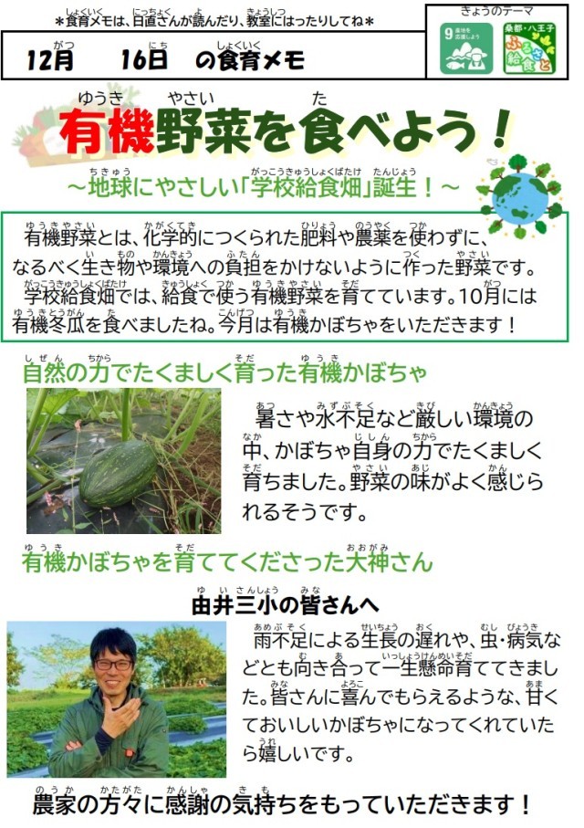 ※今日は、農家の方が大切に育ててくれた有機かぼちゃを使ってカレーライス