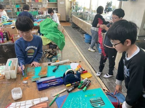 12/18(木)3年図画工作 「ひらいて広げてふしぎなせかい」