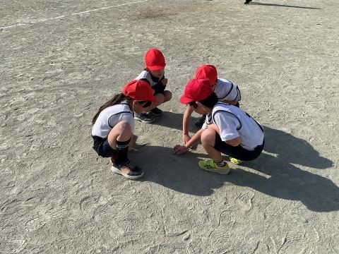 今日の体育の時間では、「ゴール型運動」サッカーをしました。チームで作戦をたてて、協力して取り組んでいます。