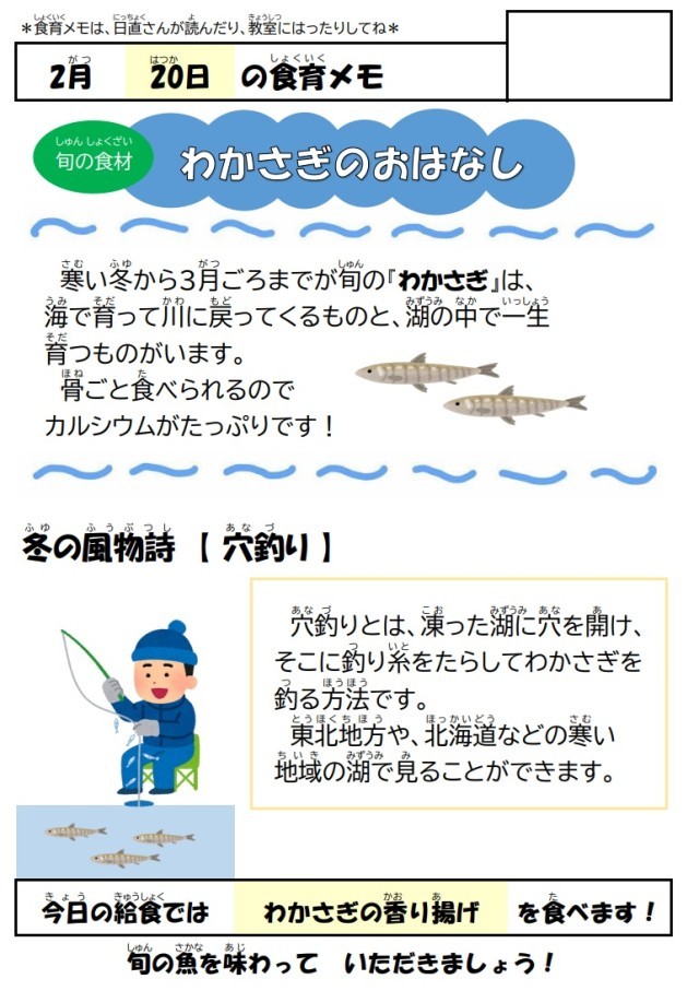 ※今日は、今が旬のわかさぎを香り揚げにしていただきました♪