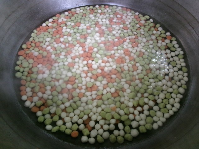 ひな祭りフルーツ白玉は、白・ピンク・緑の3色の白玉を