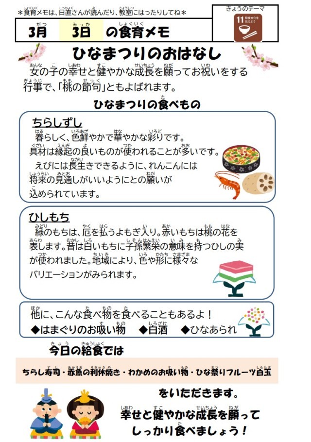 3月3日(火)の給食