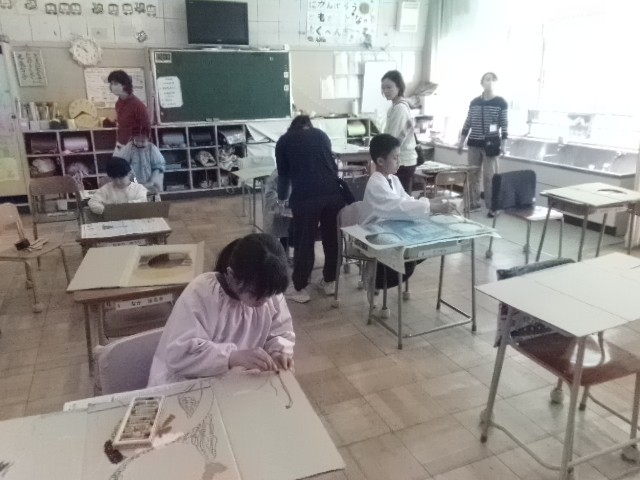 先週から作り始めた顔はめパネルが完成しました。完成したパネルを使って、さっそく記念写真を撮りました。子供たちは、思い思いのパネルが完成して、充実した様子でした。想像したものを作ってみたいという気持ちが強く、進んで創作活動に取り組むことができました。