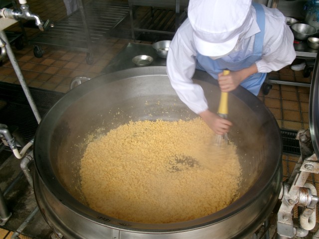 「今日は二色丼です。鶏肉のそぼろを甘辛く煮詰め、炒り卵を添えて彩の華やかな二色丼は食欲をそそりますよね。茎わかめのきんぴらと一緒にたくさん食べてほしいです。」