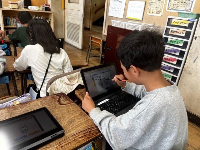 2組では、クロームブックを使ってクラスルームに参加したり、漢字ドリルのアプリ版に取り組んだりしました。