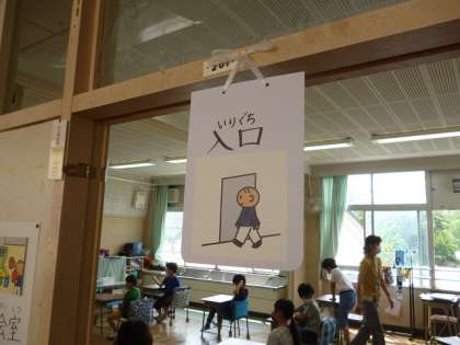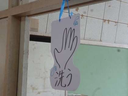 校内を回っていると、感染症を予防するための工夫が見られます。教室の入口と出口を決めて一方通行にすることで人とぶつからないようにしたり、教室に入るときには手洗いを忘れないように促したりしています。