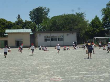 2年生は、水分補給や日陰での休憩をしながら、校庭で体育の学習をしました。密にならないように、今は一人でできる運動を中心に行っています。飛行機になった気持ちでスピードに乗って走りました。