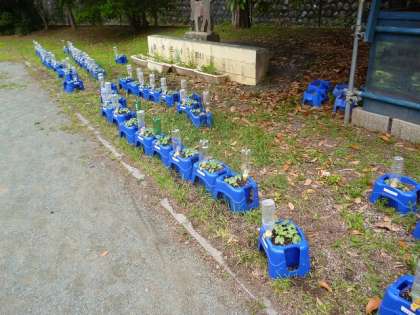 ついこの間植えたばかりなのに、もうたくさん葉が出てきています。1年生が毎朝しっかり水をあげているからでしょうか。早くきれいな色の花が咲くといいですね。