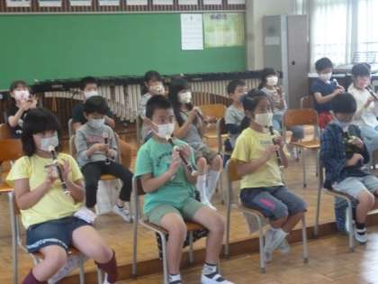3年生は、今年からリコーダーの学習が始まります。姿勢、持ち方、音の出し方などを、丁寧に教わりました。何でも最初が肝心です。しっかり学んで、きれいな音色で演奏できるようになってくださいね。