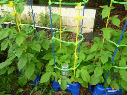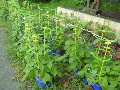 校庭で遊んでいる子供たちの写真を撮っていたら、後ろから1年生にスッと手を取られ、アサガオの鉢植えが並んでいる場所に導かれました。いつの間にか背が高くなって、たくさん葉っぱを付けたアサガオを見てびっくり! もうすぐきれいな花が咲きますね。