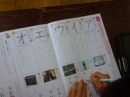 1年生は、ひらがなの学習が終わり、今度はカタカナの学習が始まりました。ひらがなと同じように、しっかりと書けるようになってね。