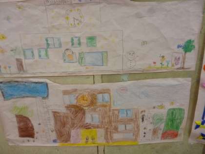 2年生は、1年生のために学校の紹介文や絵もかきました。1年生のみなさん、由井第三小学校のことが、よくわかったかな?