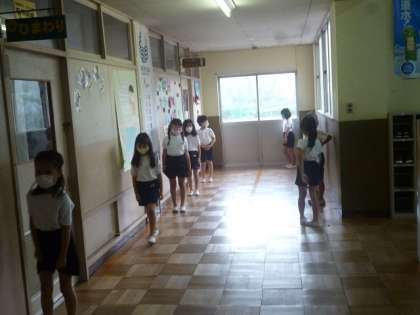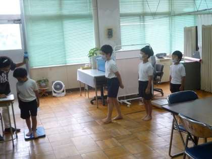 2組は、身体計測をしていました。並び方も待ち方も上手ですね。夏休みが明けて、みんな大きく逞しくなりました。