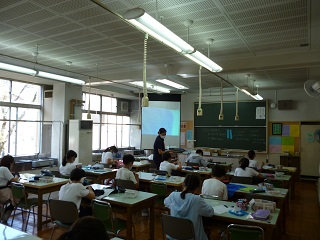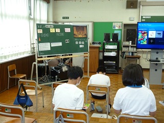 密をさけて2グループに別れて、音楽と家庭科を行っています。音楽では「木星」の鑑賞。家庭科では「クッション作り」に取り組んでいます。