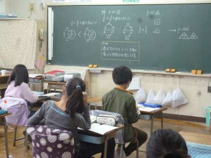 5年生は分数の学習です。通分や約分は、分母の最小公倍数や最大公倍数を見つけることが苦手だと、つまずきやすいところです。みんな、たくさん練習して力を付けてくださいね。