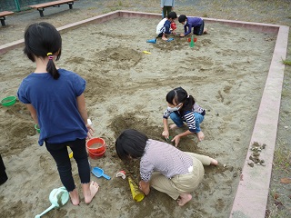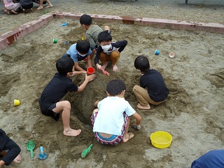 砂と水を使ってで造形活動を思いきり楽しみました。