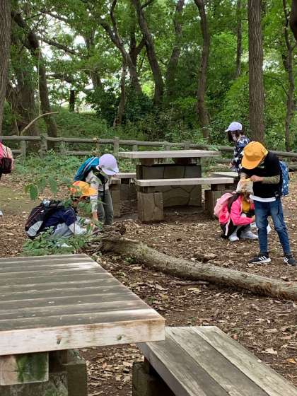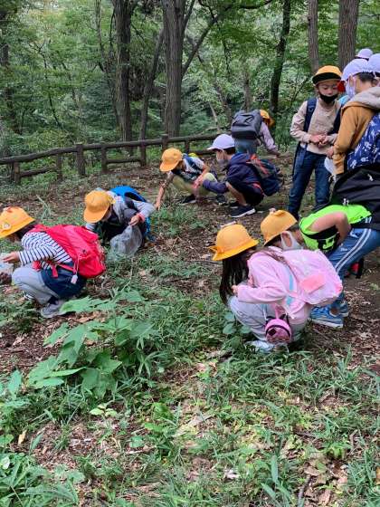 二の丸広場に行く途中で、どんぐり拾いをしました。2年生が優しくリードしてくれて、1年生はたくさん拾うことができました。