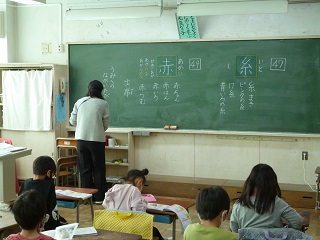 漢字練習の後、「うみへのながいみち」のお話の中の写真から、お気に入りの写真を選びます。選んだ写真を友達に紹介していきます。