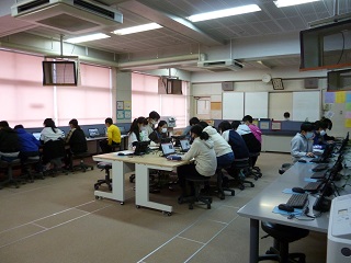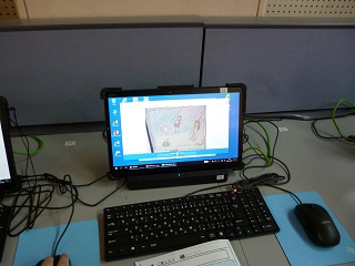 外国語で学んだ表現を活用して、小学校での自分の思い出を作成しています。できあがったら紹介し合います。