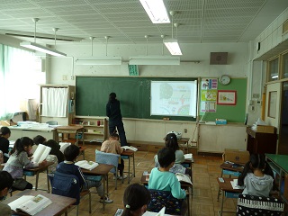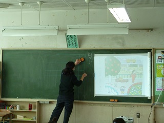 絵を見て、文をつくります。どんな文がつくれたかな。