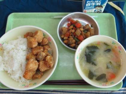 きょうは、大豆、にんじん、ごぼう、とり肉、いんげん