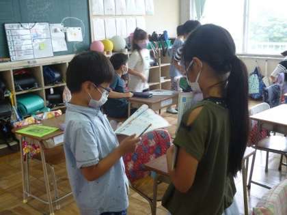 4年生は、外国語活動で曜日について学んでいます。お友達と何曜日が好きか尋ね合い、聞き取ったことを書き込んでいきます。男女に関係なく、だれとでも英語でコミュニケーションがとれることは素晴らしいことです。