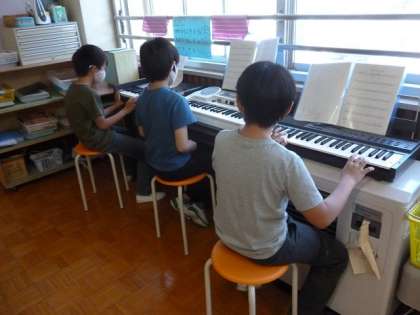 5年生は「キリマンジャyロ」という合奏曲を、担当する楽器ごとに分かれて練習中です。毎年5年生が学習する曲ですが、リズムに合わせて思わず体が動いてしまうステキな曲です。