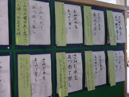 6年生の教室前には、自作の短歌が貼ってあります。皆それぞれに、見たことや感じたことを素直に書いています。