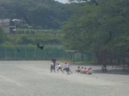 校庭では3年生が反復横跳びを計測しています。今日もお天気がよいので熱中症が心配でしたが、念のため暑さ指数を測ってみたところ、大丈夫そうなので安心しました。子供たちの様子に気を配りながら計測しました。